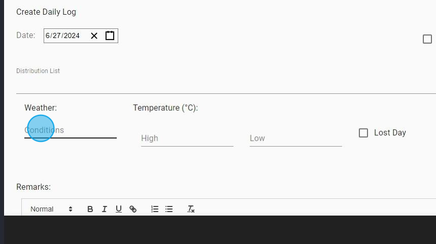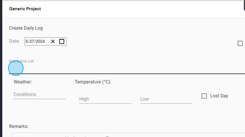 8. Add the distribution list (include anyone who is required to access the daily log at any point)