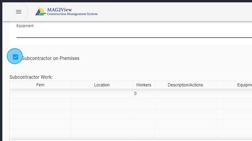 12. Select “Subcontractor on Premises” if applicable. *Note: if this box is selected, more fields become available to fill out below.