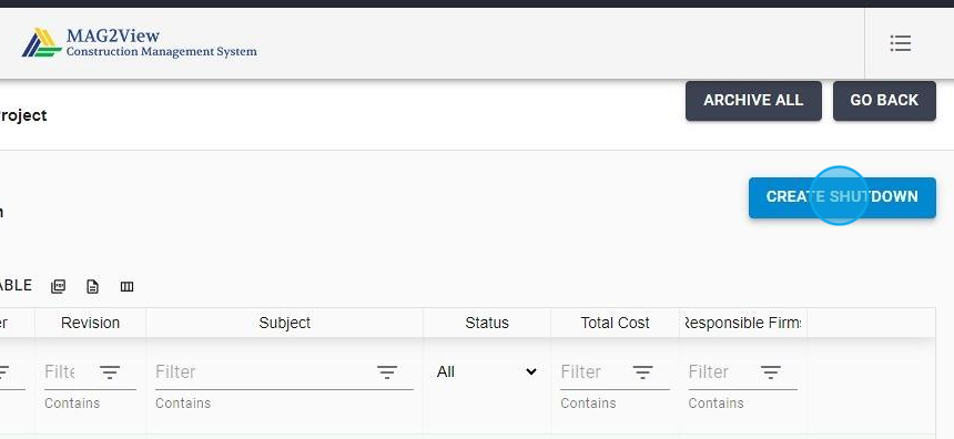 6. Click “CREATE SHUTDOWN”