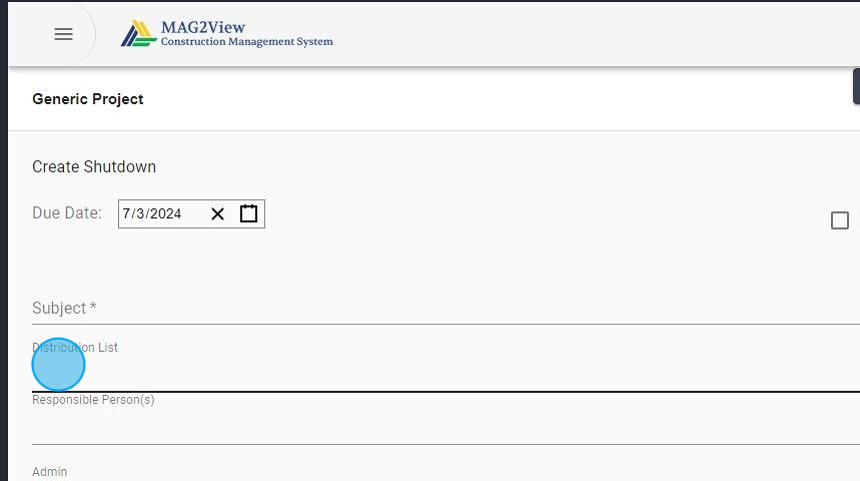 9. Add the distribution list (include anyone who is required to access the Shutdown Request at any point)