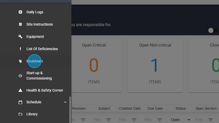 11. Select the “Shutdown Status”