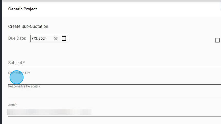 9. Add the distribution list (include anyone who is required to access the Sub-Quotation at any point)
