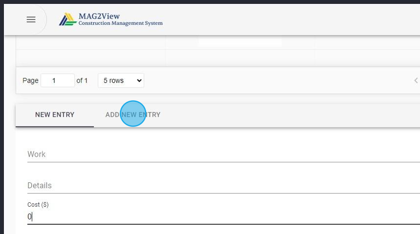11. Click “ADD NEW ENTRY” if necessary (will need to fill out the “Work”, “Details”, and “Cost” fields again)